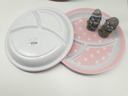Khay ăn chia 3 ngăn cho bé họa tiết chấm bi, dáng tròn màu hồng nhạt