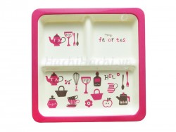 Khay ăn chia 3 ngăn cho bé họa tiết, màu hồng đậm