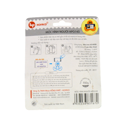 Hướng dẫn sử dụng: Ấn mạnh móc dán vào bề mặt đã được lau chùi khoảng 60 giây. Để keo dính chặt sau 24h mới sử dụng.